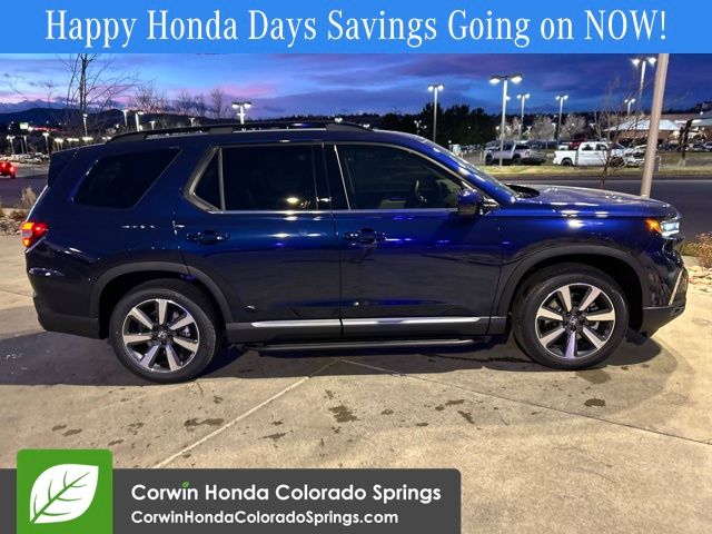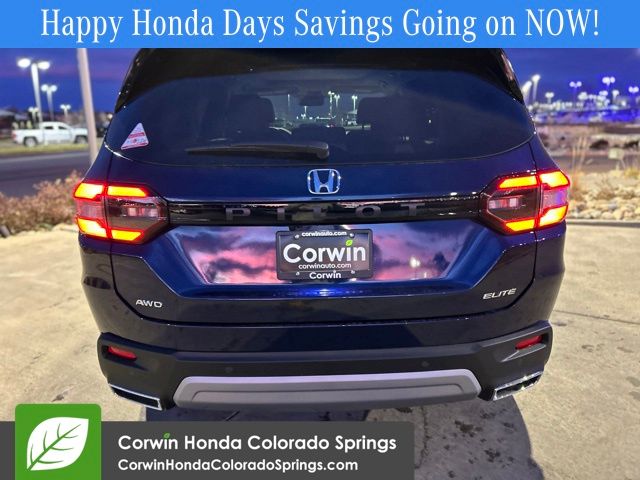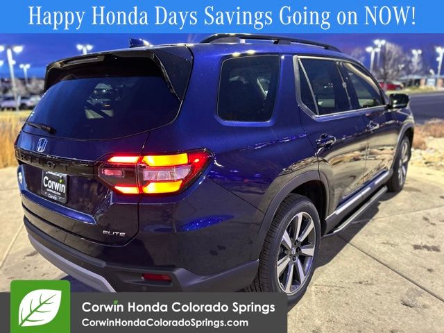 Obsidian Blue Pearl 2025 Honda Pilot 4D Sport Utility Elite 3.5L V6 DOHC 24V 10-Speed Automatic AWD 19/25 City/Highway MPG