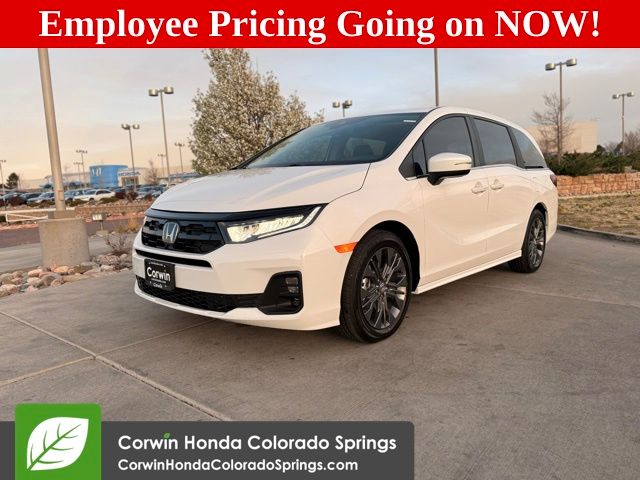 Platinum White Pearl 2026 Honda Odyssey 4D Passenger Van Touring 3.5L V6 SOHC i-VTEC 24V 10-Speed Automatic FWD 19/28 City/Highway MPG