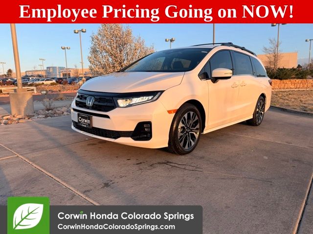 Platinum White Pearl 2026 Honda Odyssey 4D Passenger Van Elite 3.5L V6 SOHC i-VTEC 24V 10-Speed Automatic FWD 19/28 City/Highway MPG