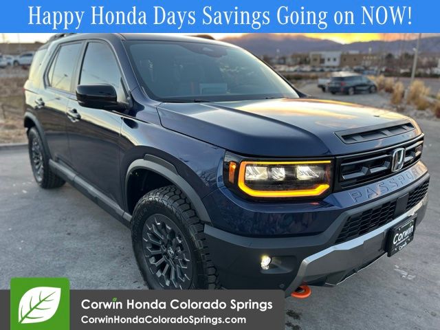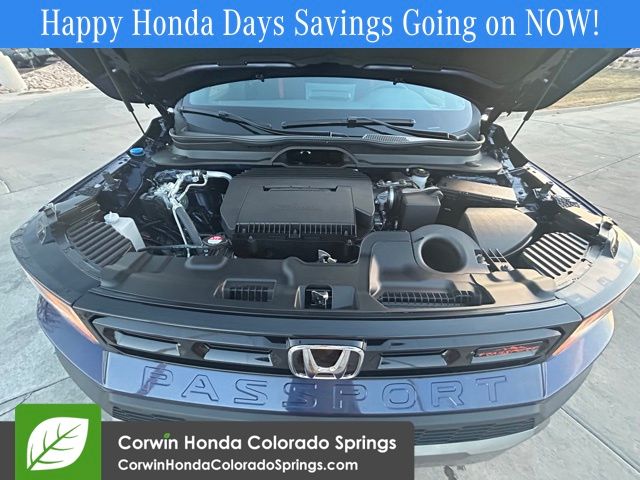 Obsidian Blue Pearl 2026 Honda Passport 4D Sport Utility TrailSport 3.5L V6 DOHC 24V 10-Speed Automatic AWD 18/23 City/Highway MPG