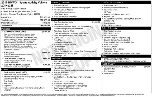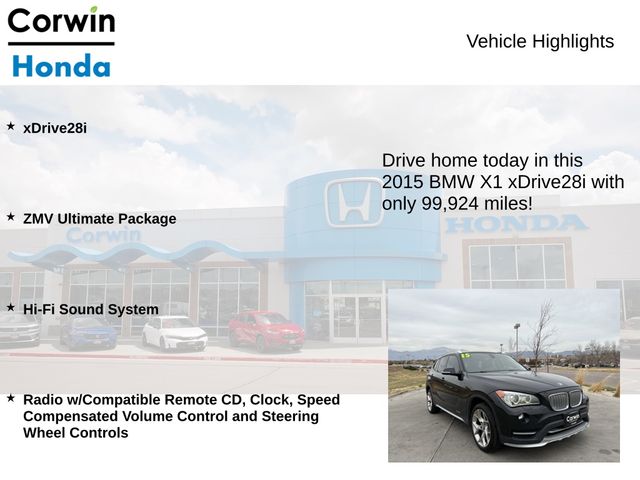 Elevate your driving experience with this exceptional 2015 BMW X1 xDrive28i. Boasting a sleek Black exterior and a well-appointed interior, this versatile luxury crossover is ready to take you on the journey of a lifetime.