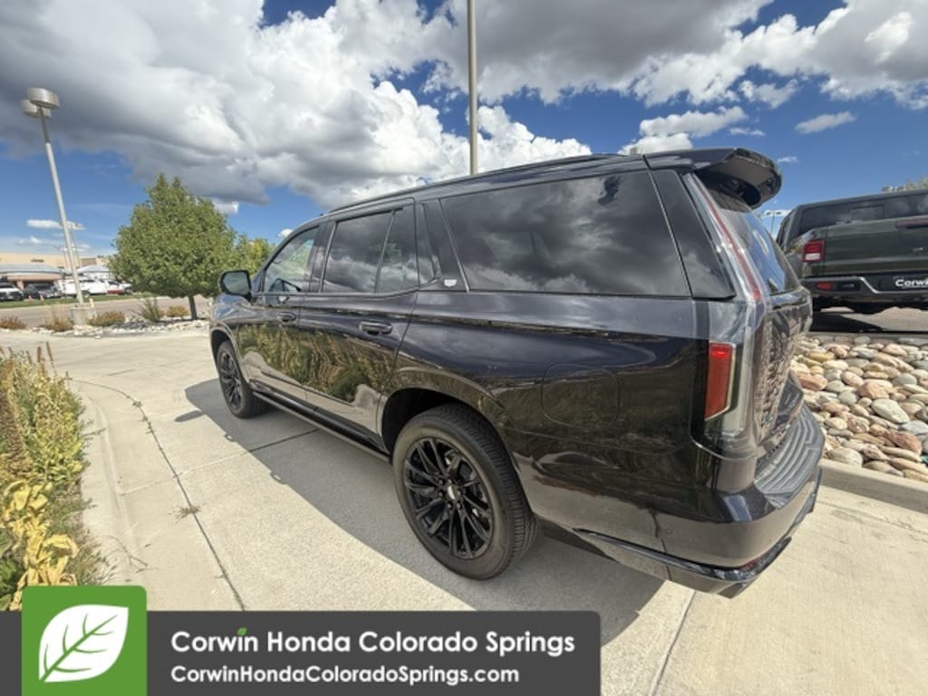 This Cadillac Escalade is well equipped and includes the following features and benefits, 4x4 / 4 Wheel Drive / AWD, Spare tire lock, hoist shaft Hands-Free Liftgate open and close, programmable memory height, with Cadillac branded projection light Door handles, illuminating Door handles, body-color Rear Camera Mirror Washer Wiper, rear intermittent Wipers, front intermittent, Rainsense Windshield, solar absorbing Glass, deep-tinted Glass, acoustic, laminated windshield Mirrors, outside heated power-adjustable power-folding, body-color, driver-side auto-dimming, integrated turn signal indicators and puddle lighting Tail lamps, LED illumination Headlamps, LED Headlamps, automatic on/off Headlamp control, automatic leveling system Active Aero Shutters, front (Deleted when (LM2) 3.0L Turbo Diesel engine is ordered.) Moldings, Gloss Black, bodyside Sunroof, power, panoramic with tilt, slide, express-open/close and sun shade control IntelliBeam, automatic high beam on/off (Deleted when (UVG) Adaptive Headlamp System is ordered.) Tire, spare 265/70R17SL all-season, blackwall Tires, 275/50R22SL all-season, blackwall IntelliBeam, automatic high beam on/off, Trailer Side Blind Zone Alert Safety Alert Seat Reverse Automatic Braking Front Pedestrian Braking StabiliTrak, vehicle stability enhancement system with Rollover Mitigation, includes disable switch Airbags, Frontal for driver and front passenger; Seat-mounted side-impact for driver and front passenger; Driver inboard seat-mounted side-impact; Roof-rail mounted head-curtain for outboard seating positions (Always use seat belts and child restraints. Children are safer when properly secured in a rear seat in the appropriate child restraint. See the Owner's Manual for more information.) Front outboard Passenger Sensing System for frontal outboard passenger airbag (Always use seat belts and child restraints. Children are safer when properly secured in a rear seat in the appropriate child restraint. See the Owner's Manual for more information.) Cadillac Connected Access capable (Subject to terms. See onstar.com or dealer for details.) Enhanced Automatic Parking Assist includes semi-automatic steering, applying limited braking, as well as shifting gears into a detected parking space Brakes, Hill Start-Assist/Hill hold Tire Fill Alert provides visual and audible alerts outside the vehicle when inflating an under inflated tire to the recommended tire pressure Rear Cross Traffic Alert Rear Pedestrian Alert Automatic Seat Belt Tightening Seat belt indicator, 2nd row Seat belt indicator, 3rd row Seat belts, 3-point, all positions, includes front seat belt pretensioners Buckle to Drive prevents vehicle from being shifted out of Park until driver seat belt is fastened; times out after 20 seconds and encourages seat belt use, can be turned on and off in Settings or Teen Driver menu Door locks, rear child security Rear Seat Reminder. Odometer is 8890 miles below market average!
