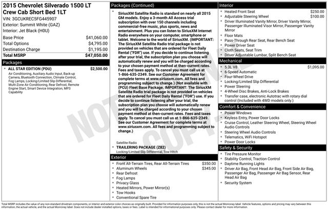 All Star Edition, Dual-Zone Automatic Climate Control, Remote Vehicle Starter System, Preferred Equipment Group 1LT, Heavy-Duty Rear Locking Differential, Trailering Equipment.