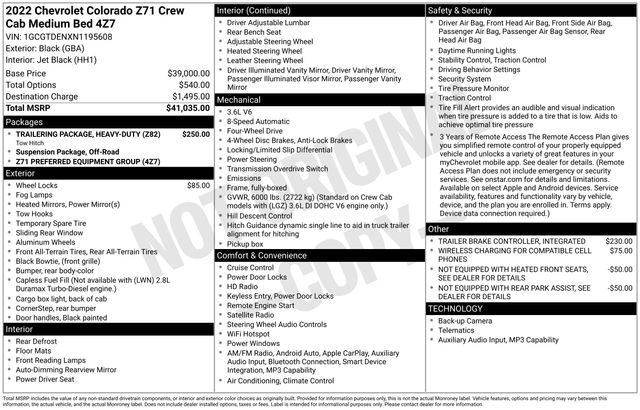 This Chevrolet Colorado is well equipped and includes the following features and benefits, 4WD Z71, 17" X 8" Bright Machined Aluminum Wheels, Heated Driver and Front Passenger Seats, HD Rear Vision Camera, Wireless Charging For Compatible Cell Phones.
