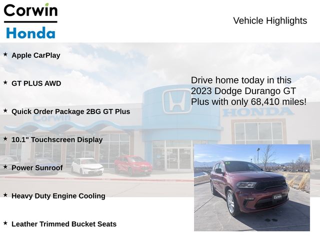 Discover the perfect balance of power, style, and technology in the 2023 Dodge Durango GT Plus. Experience the difference for yourself by scheduling a test drive at our dealership today. We're confident you'll be impressed by this exceptional SUV.
