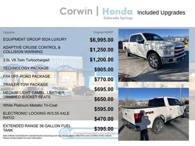Priced below KBB Fair Purchase Price! 2015 White Platinum Metallic Tri-Coat Ford F-150 Lariat