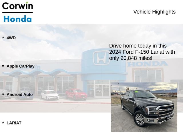 This 2024 Ford F-150 Lariat is more than just a truck â" it's a testament to Ford's commitment to innovation and excellence. With its unparalleled blend of power, technology, and premium features, this F-150 is the ultimate partner for your adventures, whether on the job site or the open road.