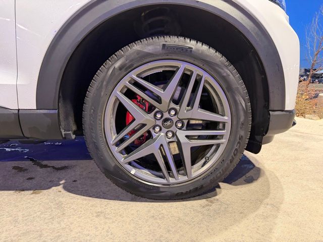 The Explorer ST-Line's bold, muscular styling is sure to turn heads wherever you go. The red-painted performance brake calipers and 21-inch magnetite-painted aluminum wheels add a touch of sportiness that complements the vehicle's sleek, modern design.