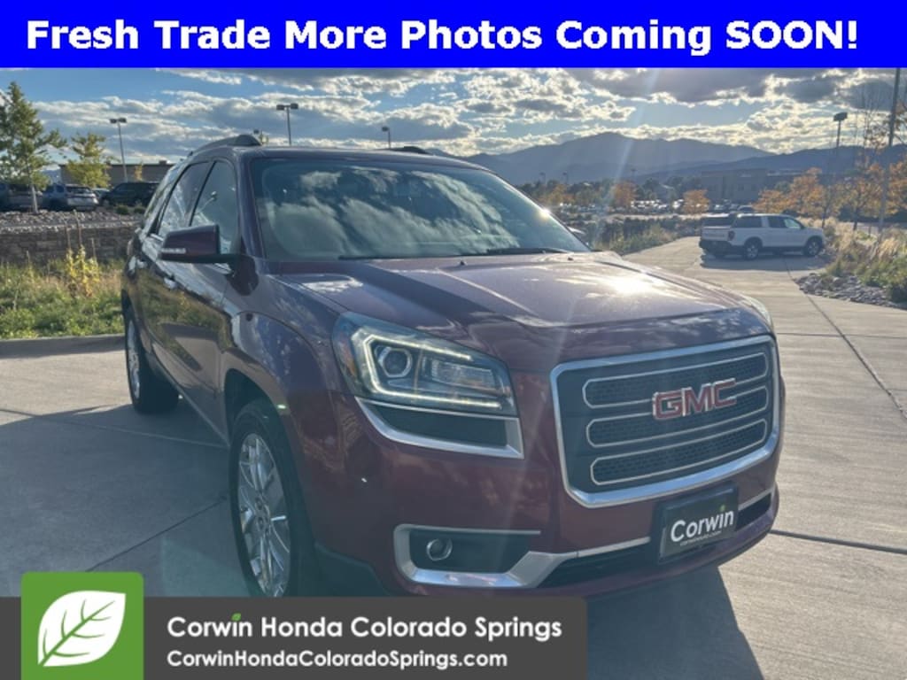 This GMC Acadia Limited is well equipped and includes the following features and benefits, AWD, 6-Speed Automatic Transmission Side Blind Zone Alert and Rear Cross Traffic Alert NavTraffic Power Rear Liftgate Body Front Halogen Projector Beam Fog Lamps Variable Effort Power Steering Leather-Wrapped Steering Wheel Single Outlet Exhaust Tilt and Telescopic Steering Column Heated Driver and Front Passenger Seats Electronic Cruise Control with Set and Resume Speed Heated Power-Adjustable Outside Mirrors Inside Rearview Auto-Dimming Mirror Preferred Equipment Group 4SB Federal Emissions Requirements 3.6L SIDI V6 Engine SiriusXM Satellite Radio 3.16 Axle Ratio 6,459 lbs. (2,930 Kgs) GVWR P255/55R20 H-Rated BW Tires 20" X 7.5" Chrome-Clad Aluminum Wheels 7-Passenger Seating (2-2-3 Seating Configuration) Leather-Appointed Seat Trim Color Touch Navigation Radio with IntelliLink 2-Position Memory For Driver's Seat Adjuster 8-Way Power Driver Seat with Memory 8-Way Power Passenger Seat Adjuster Power Windows with Driver Express-Up and -Down Body-Color Bodyside Moldings Remote Vehicle Start Tri-Zone Automatic Climate Control.