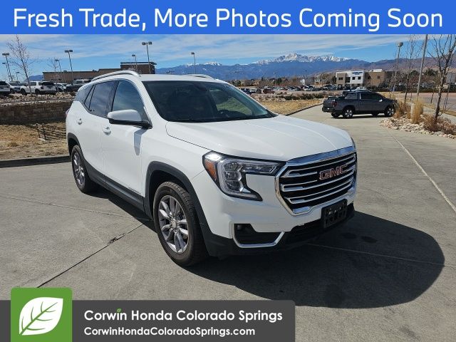 Beneath the sleek exterior, the Terrain SLT's 1.5L DOHC engine and 9-speed automatic transmission with AWD deliver a dynamic and efficient performance. With an EPA-estimated 23 city/28 highway MPG, this SUV offers the perfect balance of power and fuel economy to tackle your daily adventures.