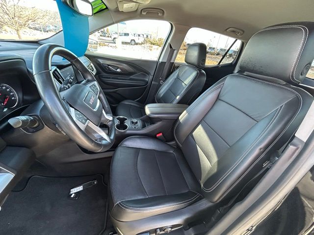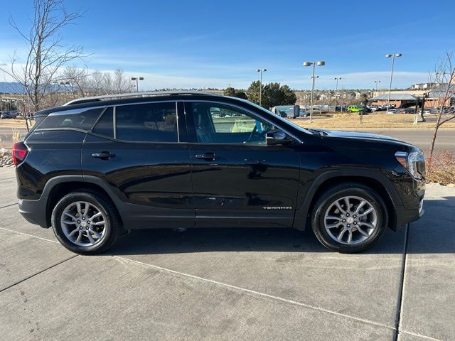 The Terrain SLT's cabin is a sanctuary of comfort and convenience, featuring a host of premium amenities. Slip into the plush, perforated leather-appointed seats and enjoy the 8-way power driver's seat with memory function, ensuring a personalized driving position every time. Stay connected with the intuitive GMC Infotainment Audio System, complete with an 8-inch display, wireless Apple CarPlay, and wireless Android Auto compatibility.