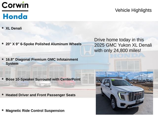 Experience the pinnacle of luxury and capability with the 2025 GMC Yukon XL Denali. Schedule a test drive today and discover the true essence of what a premium SUV should be.