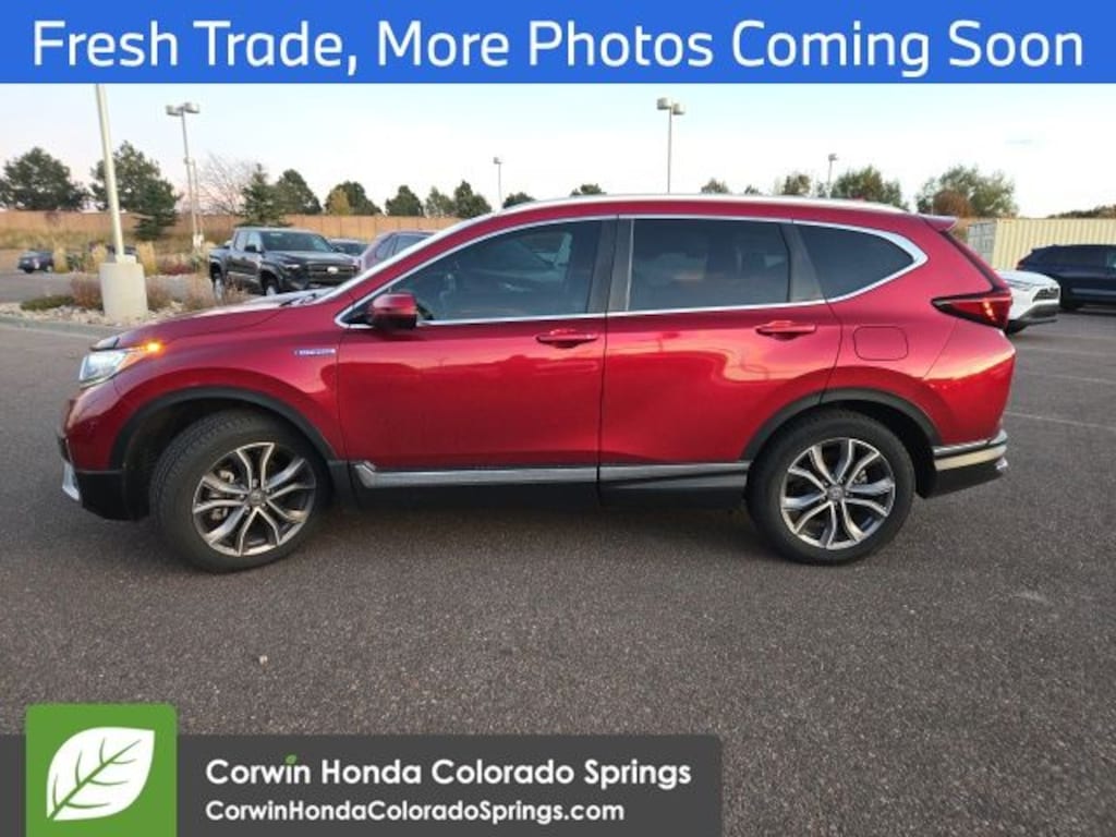 Priced below KBB Fair Purchase Price! 2021 Radiant Red Metallic Honda CR-V Hybrid Touring