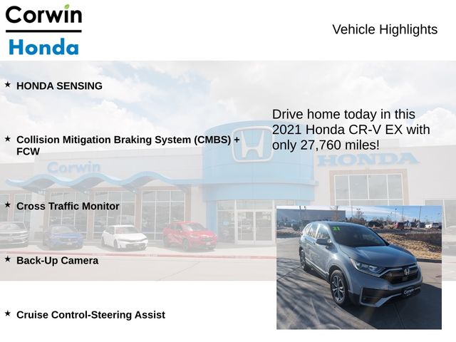 With its exceptional blend of style, technology, and capability, this 2021 Honda CR-V EX is a must-see. Experience the difference for yourself and schedule a test drive today. We're confident you'll be impressed by this outstanding SUV.