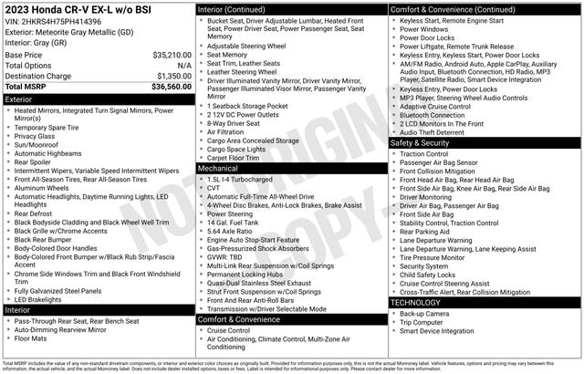 The versatile cargo space and split-folding rear seats make this CR-V the perfect companion for your adventures, whether it's a weekend getaway or a family road trip. Elevate your driving experience and discover the perfect blend of style, performance, and functionality with this exceptional 2023 Honda CR-V EX-L.