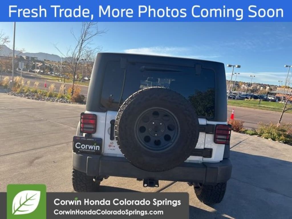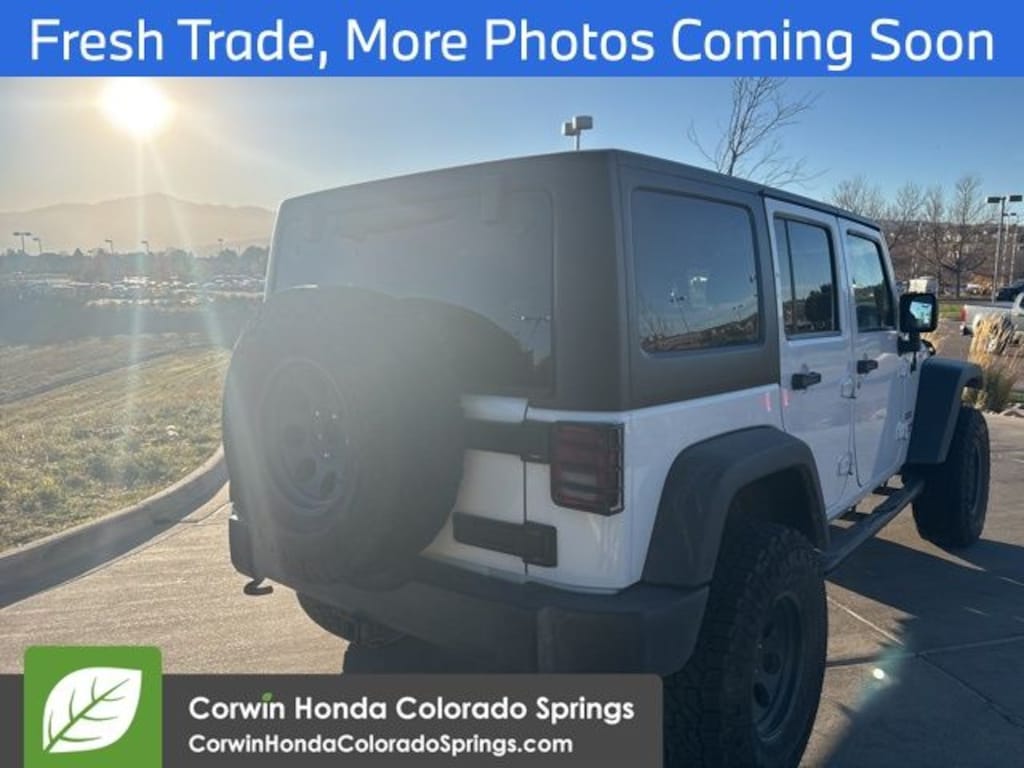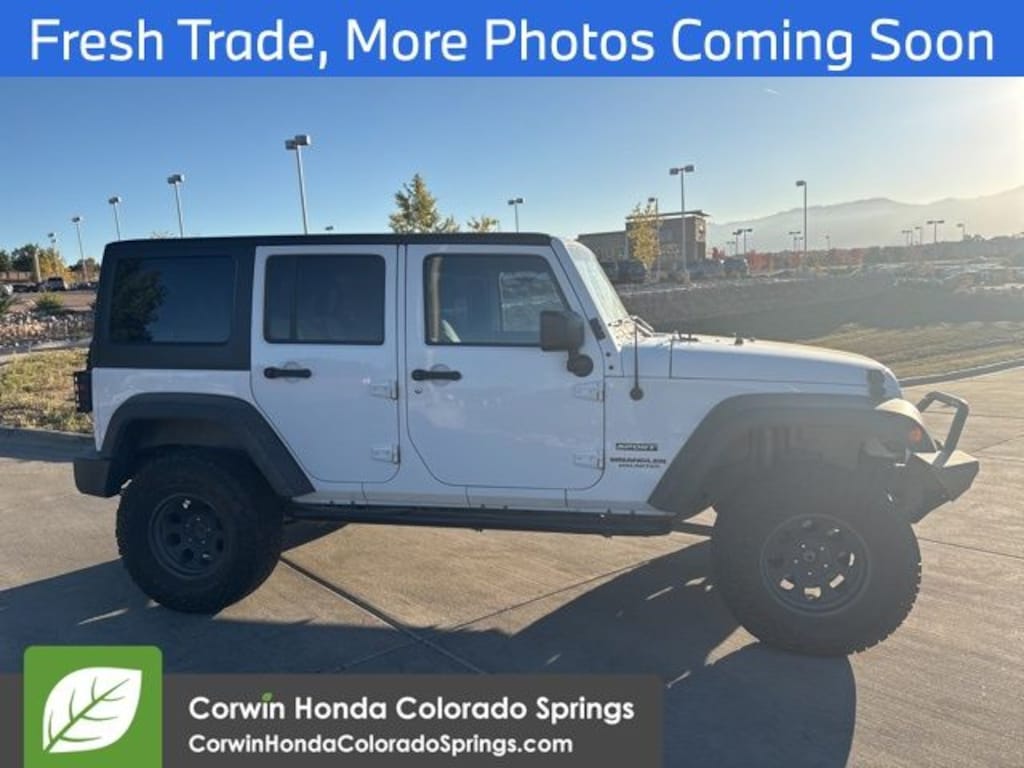 This Jeep Wrangler is well equipped and includes the following features and benefits, 4x4 / 4 Wheel Drive / AWD, Side Impact Beams Dual Stage Driver And Passenger Front Airbags Airbag Occupancy Sensor Rear Child Safety Locks Outboard Front Lap And Shoulder Safety Belts -inc: Rear Center 3 Point, Height Adjusters and Pretensioners, Normal Duty Suspension Security Alarm Black Tire Pressure Monitoring Display Trailer Tow with 4-Pin Connector Wiring Class II Receiver Hitch Tip Start Leather Wrapped Steering Wheel Remote USB Port Uconnect Voice Command with Bluetooth Delete Sunrider Soft Top Vehicle Information Center Front 1-Touch Down Power Windows Power Locks Rear Window Wiper/washer Remote Keyless Entry Power Heated Mirrors Auto Dim Mirror with Reading Lamp Rear Window Defroster Bright White Clearcoat Tinted Rear Quarter and Liftgate Windows Deep Tint Sunscreen Windows, Uconnect 430 CD/DVD/MP3/HDD Radio, Hill Descent Control, 3.73 Rear Axle Ratio 5,400 lbs GVWR Sunrider Soft Top P255/75R17 OWL On/off Road Tires 17" X 7.5" Aluminum Wheels Cloth Bucket Seats Chrome/leather Wrapped Shift Knob Freedom Panel Storage Bag, Connectivity Group, Quick Order Package 24S, Anti-Spin Differential Rear Axle. Odometer is 8311 miles below market average!