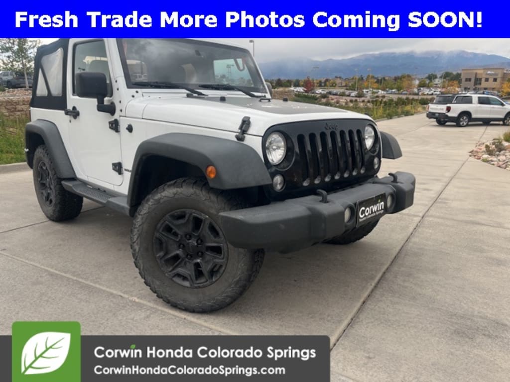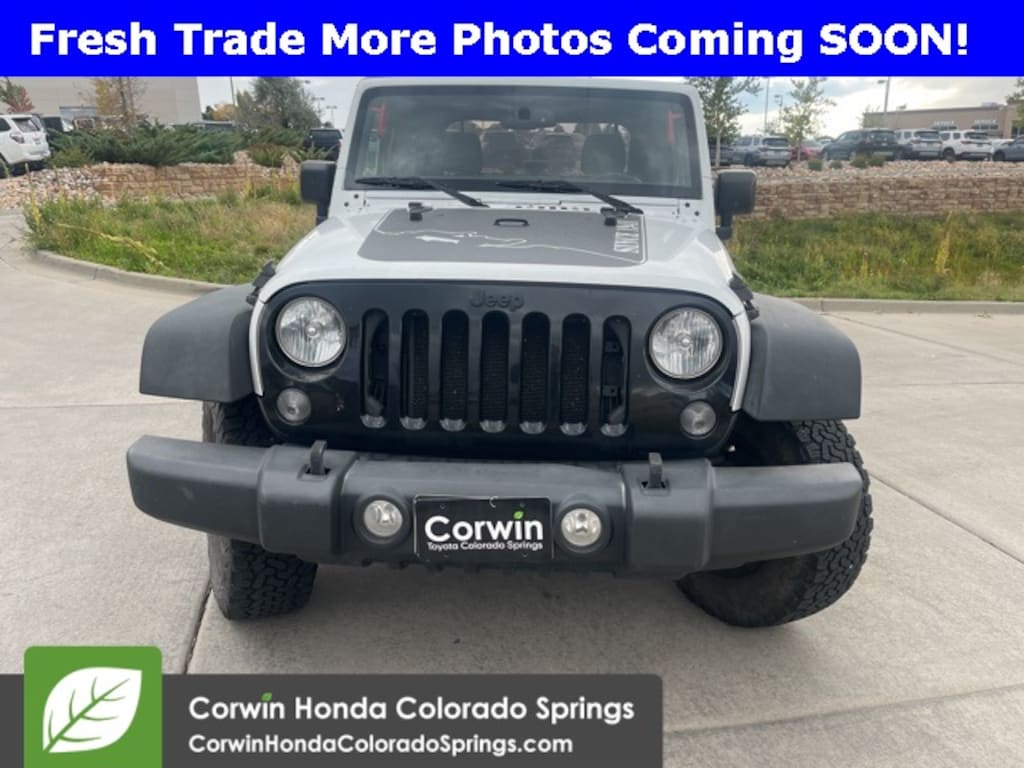 This Jeep Wrangler is well equipped and includes the following features and benefits, Local Trade, 4WD, 3.73 Rear Axle Ratio, 4-Wheel Drive Swing Gate Decal, Air Conditioning, Anti-Spin Differential Rear Axle, Auto-Dimming Mirror w/Reading Lamp, Black Jeep Grille Badge, Connectivity Group, Deep Tint Sunscreen Windows, Front 1-Touch Down Power Windows, Jeep Trail Rated Kit, Low Gloss Black Wrangler Decal, MOPAR Slush Mats, Performance Suspension, Power Convenience Group, Power Heated Mirrors, Power Locks, Quick Order Package 23W Willys Wheeler, Rear Passenger Assist Handles Kit, Remote Keyless Entry, Security Alarm, SIRIUS Satellite Radio, Sunrider Soft Top, Wheels: 17" x 7.5" High Gloss Black Willys, Willys Hood Decal, Willys Wheeler Grille, Willys Wheeler Package.