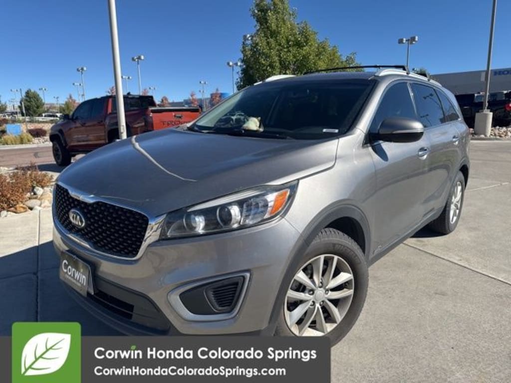 This Kia Sorento is well equipped and includes the following features and benefits, 4x4 / 4 Wheel Drive / AWD, Outboard Front Lap And Shoulder Safety Belts -inc: Rear Center 3 Point, Height Adjusters and Pretensioners Rear Child Safety Locks Airbag Occupancy Sensor Curtain 1st And 2nd Row Airbags Dual Stage Driver And Passenger Front Airbags Tire Specific Low Tire Pressure Warning Dual Stage Driver And Passenger Seat-Mounted Side Airbags Side Impact Beams, LX Convenience Package, Heated Front Bucket Seats AM/FM/MP3/SiriusXM Radio Auto Headlamp Control Dual Zone Automatic HVAC Leather Wrapped Steering Wheel and Gear Shift Knob Auto Dimming Rearview Mirror Rear Backup Park Assist Shark Fin Antenna 6-Speed Automatic Transmission with Sportmatic 3.648 Axle Ratio 5,159 lbs GVWR P235/65R17 Tires 17" X 7.0 Alloy Wheels 3rd Row A/C.