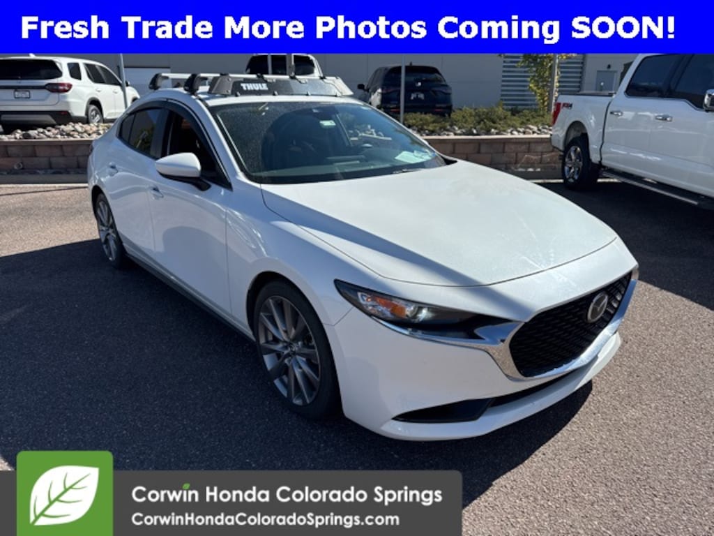 This Mazda Mazda3 is well equipped and includes the following features and benefits, Voice Recognition, Mazda Connected Services Guest Driver Alert (3-year complimentary trial included) Forward Collision Mitigation Back-Up Camera Outboard Front Lap And Shoulder Safety Belts -inc: Rear Center 3 Point, Height Adjusters and Pretensioners Rear Child Safety Locks Driver And Passenger Knee Airbag Airbag Occupancy Sensor Curtain 1st And 2nd Row Airbags Dual Stage Driver And Passenger Front Airbags Tire Specific Low Tire Pressure Warning Dual Stage Driver And Passenger Seat-Mounted Side Airbags Side Impact Beams, Dual Zone Automatic Climate Control Overhead Console with Sunglass Holder Front Lower Bumper Gloss Black Surrounds Blind Spot Monitoring with Rear Cross Traffic Alert AM/FM Audio System 18" X 7J Alloy Wheels P215/45R18 M+S Tires Snowflake White Pearl Black Snowflake White Pearl Mica Paint Charge $200.00 Leatherette Seat Trim 2.5L SKYACTIV-G DOHC 16-Valve I4 VVT Engine Select Package Driver Attention Alert Front Grille Black Gloss Paint High Beam Control Auto Headlights (on/off) Mazda Advanced Keyless Entry Lane Departure Warning System Leather Steering Wheel and Shift Knob Lane Keep Assist Mazda Radar Cruise Control with Stop and Go Rear Armrest with Cup Holders Smart Brake Support Side Mirror Turn Lamps Vanity Mirror Illumination Rain Sensing Wipers, Radio w/Seek-Scan, Speed Compensated Volume Control and Steering Wheel Controls Window Grid Antenna 2 LCD Monitors In The Front 8 Speakers. Odometer is 7452 miles below market average! 26/35 City/Highway MPG