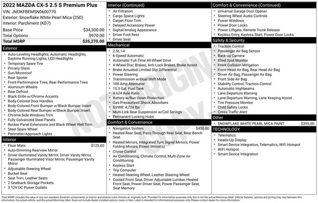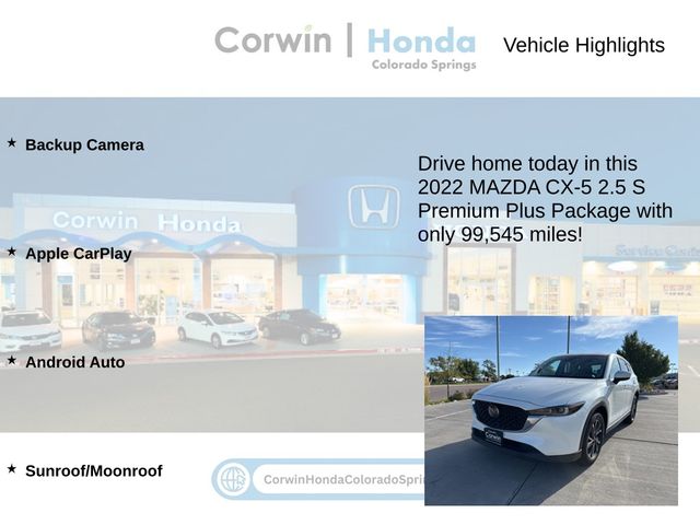 Priced below KBB Fair Purchase Price! 2022 Snowflake White Pearl Mica Mazda CX-5 2.5 S Premium Plus Package