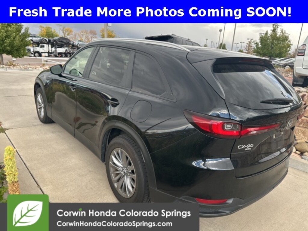 This Mazda CX-90 is well equipped and includes the following features and benefits, Backup Camera, 4x4 / 4 Wheel Drive / AWD, Curtain 1st, 2nd And 3rd Row Airbags Side Impact Beams Dual Stage Driver And Passenger Seat-Mounted Side Airbags Blind Spot Monitoring (BSM) Blind Spot Smart Brake Support (SBS) and Rear Cross Traffic Alert (RCTA) Collision Mitigation-Front Driver Monitoring-Alert Low Tire Pressure Warning Dual Stage Driver And Passenger Front Airbags Rear Cross Traffic Alert (RCTA) Smart Brake Support (SBS) Airbag Occupancy Sensor Driver And Passenger Knee Airbag Rear Child Safety Locks Outboard Front Lap And Shoulder Safety Belts -inc: Rear Center 3 Point, Height Adjusters and Pretensioners Back-Up Camera Tire Specific Low Tire Pressure Warning, Radio w/Seek-Scan, Clock, Speed Compensated Volume Control and Steering Wheel Controls Radio: AM/FM Sound System -inc: HD Radio, 8 speakers, Bluetooth hands free phone and streaming audio, 10.25" full-color center display, audio menu voice-command, 4 USB inputs, wired Android Auto integration and wired Apple CarPlay integration Window Grid Antenna Mazda Connected Services -inc: in vehicle wi-fi, remote engine start, remote lock/unlock, remote hazard light, vehicle status alert, vehicle finder, send to car, map online update via Mazda Toolbox, vehicle health report, online update, push notifications, guest driver alert, malfunction notification, recall notification, automatic 911 dialing and Mazda road side assistance Pandora Internet Radio Integration Radio Broadcast Data System Program Information Infotainment System Voice Command 2 LCD Monitors In The Front 8 Speakers. 24/28 City/Highway MPG