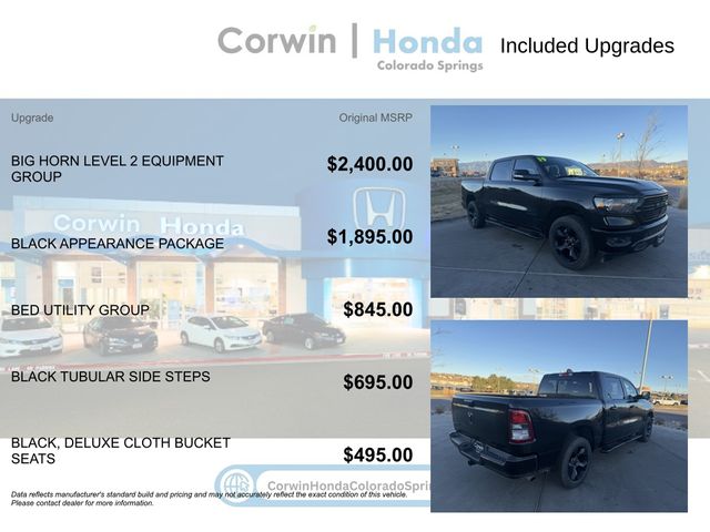BIGHORN LEVEL 2, Black Appearance Package, Heated Steering Wheel, Heated Front Seats, Remote Start System, Universal Garage Door Opener. Odometer is 10546 miles below market average!