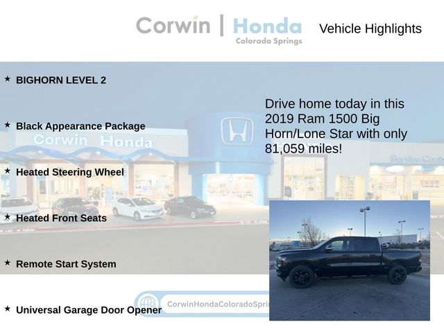 Priced below KBB Fair Purchase Price! 2019 Diamond Black Crystal Pearlcoat Ram 1500 Big Horn/Lone Star
