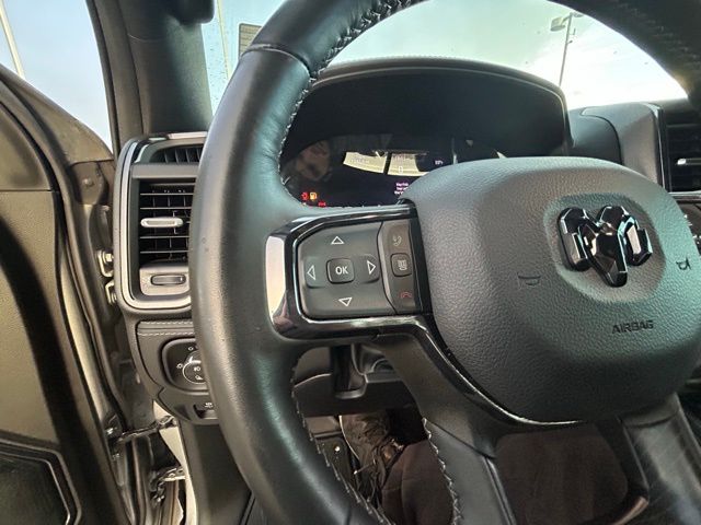This Ram 1500 is well equipped and includes the following features and benefits, Backup Camera, 4x4 / 4 Wheel Drive / AWD, Collision Mitigation-Front Blind Spot Detection Blind Spot Forward Collision Warning-Plus and Cross Path Detection Tire Specific Low Tire Pressure Warning Dual Stage Driver And Passenger Front Airbags Curtain 1st And 2nd Row Airbags Airbag Occupancy Sensor Rear Child Safety Locks Outboard Front Lap And Shoulder Safety Belts -inc: Rear Center 3 Point, Height Adjusters and Pretensioners Dual Stage Driver And Passenger Seat-Mounted Side Airbags Side Impact Beams Forward Collision Warning-Plus, 2 LCD Monitors In The Front Active Noise Control System Radio: Uconnect 5 Nav w/12.0" Display Streaming Audio Fixed Antenna 506w Regular Amplifier Connected Travel & Traffic Services Real-Time Traffic Display, Heated Second Row Seats Bucket Seats Ventilated Rear Seats Ventilated Front Seats Rear 60/40 Folding Split Recline Seat 4 Way Front Headrests Full Length Premium Floor Console Heated Front Seats Front Seat Back Map Pockets Auto Dim Exterior Driver Mirror Digital Rearview Mirror Active Noise Control System Power 4-Way Driver Lumbar Adjust Delete Alternator Power 4-Way Passenger Lumbar Adjust Power 8-Way Driver and Passenger Seats Lane Keep Assist Head Up Display Dome Dual LED Reading Lamp LED Dome/reading Lamp Exterior Mirrors with Supplemental Signals Exterior Mirrors Courtesy Lamps Exterior Mirrors with Memory Chrome Exterior Mirrors Driver Seat Memory 33 Gallon Fuel Tank $445.00 Quick Order Package 27M Limited Limited Level 1 Equipment Group $4,995.00 Body Color Bumper Group $295.00 50 State Emissions 5.7L V8 HEMI MDS VVT ETorque Engine 8-Speed Automatic Transmission 3.92 Rear Axle Ratio $195.00 Anti-Spin Differential Rear Axle $495.00 7,100 lbs GVWR 275/55R20 All Season LRR Tires 20" X 9" Aluminum Painted/polished Wheels Premium Leather Trimmed Bucket Seats Billet Silver Metallic CC $295.00 Harman/kardon 19 Speaker Premium Sound Dual-Pane Panoramic Sunroof $1,595.00 Front License Plate Bracket ParkSense Front/rear Park Assist with Stop Power Running Boards Surround View Camera System Trailer Brake Control $295.00 Tri-Fold Tonneau Cover $695.00 Uconnect 5 Navigation with 12.0" Display Radio MOPAR Spray in Bedliner Pick-Up Box Lighting Black Dual Rear Exhaust with Bright Tips Exterior Mirrors with Heating Element Heated Steering Wheel Adaptive Cruise Control with Stop and Go Heavy Duty Engine Cooling Wireless Charging Pad 18" Aluminum Spare Wheel 48V Belt Starter Generator Parallel and Perp Park Assist with Stop Passive Tuned Mass Damper HEMI Badge Body Color Rear Bumper with Step Pads Body Color Front Bumper Pedestrian Emergency Braking LED CHMSL Lamp Convex Wide-Angle Exterior Mirror Insert Power-Folding Mirrors. Odometer is 1826 miles below market average!