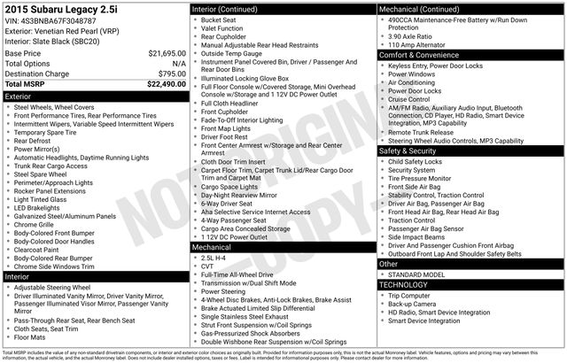2015 Venetian Red Pearl Subaru Legacy 2.5i