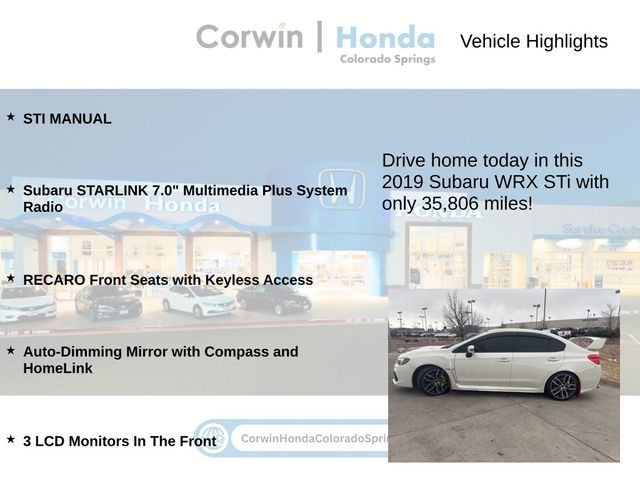 STI MANUAL, Subaru STARLINK 7.0" Multimedia Plus System Radio, RECARO Front Seats with Keyless Access, Auto-Dimming Mirror with Compass and HomeLink, 3 LCD Monitors In The Front. Odometer is 26501 miles below market average!