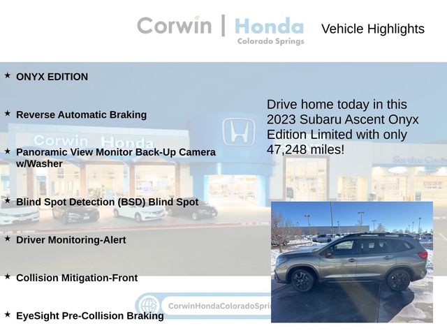 Priced below KBB Fair Purchase Price! 2023 Green Metallic Subaru Ascent Onyx Edition