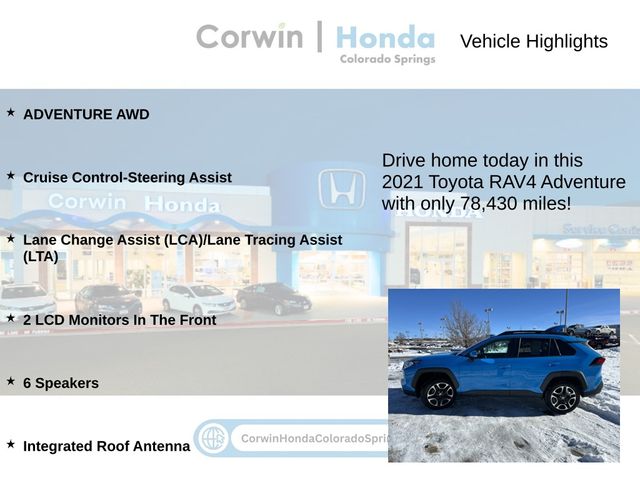 ADVENTURE AWD, Cruise Control-Steering Assist, Lane Change Assist (LCA)/Lane Tracing Assist (LTA), 2 LCD Monitors In The Front, 6 Speakers, Integrated Roof Antenna. Odometer is 8629 miles below market average! 25/33 City/Highway MPG