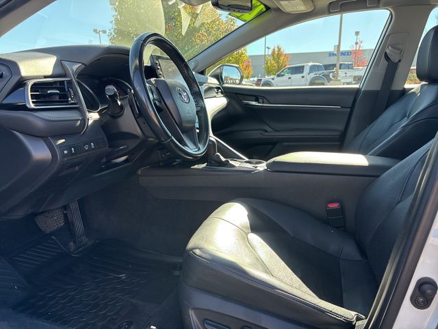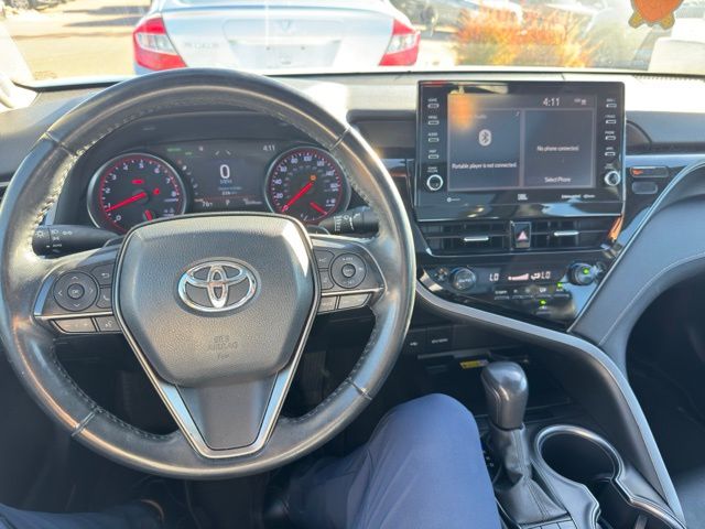 This Toyota Camry is well equipped and includes the following features and benefits, XSE V6, Audio Plus- 9-in Touchscreen, 9 JBL Spkrs incl Subwoofer & Amplifier,, Hands-Free Bluetooth Phone/Music, SiriusXM, Android Auto & Apple CarPlay Compatible, ABS brakes, Active Cruise Control, Alloy wheels, Compass, Electronic Stability Control, Front dual zone A/C, Heated door mirrors, Heated front seats, Illuminated entry, Low tire pressure warning, Perforated Leather Seat Trim, Power moonroof, Remote keyless entry, Traction control.